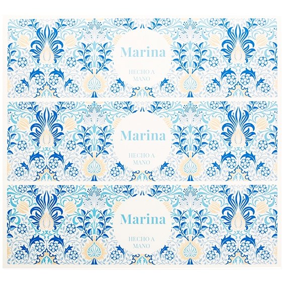 Pack de 10 pegatinas, de 6,2×23 cm, que personalizaremos para ti. Son ideales para decorar velas en latas. Estas pegatinas tienen un bonito estampado persa en tonos azules. Son alargadas y en el centro cuentan con un círculo de 5 cm de diámetro para escribir el texto que desees. Por ejemplo, si las quieres para decorar tus detalles de invitado se pueden imprimir con el nombre y la fecha. Otra posibilidad es escribir “Vela aromática” y el aroma que hayas empleado para perfumarlas “Vainilla”, por ejemplo. También se puede escribir un nombre y el texto “Hecho a mano”; “Producto artesanal”. ¡Hay multitud de opciones! Tienes que indicar el texto en las observaciones del pedido. Para comprar estas pegatinas hay que seleccionar como mínimo 2 packs. Las pegatinas personalizadas no se pueden pagar contra reembolso.