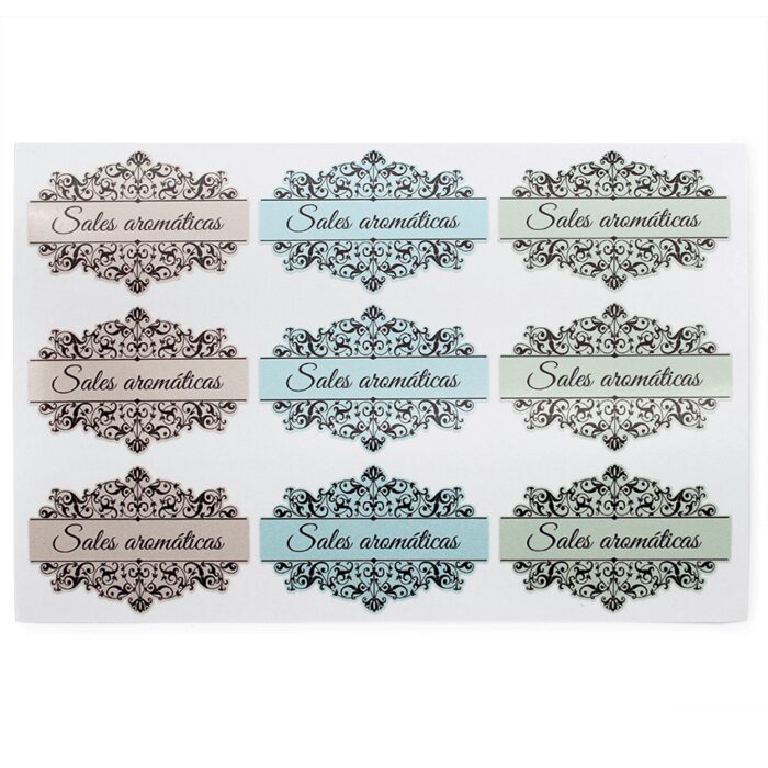 Blíster de 9 pegatinas vintage para sales aromáticas, de 5×3,3cm. Cada blíster combina tres colores diferentes de pegatinas: tostado, azul y verde. Aúnan diseño y funcionalidad, ya que son prácticas y muy bonitas. Otra de sus grandes ventajas es que son resistentes al agua. Estas pegatinas están impresas en papel plástico, son de calidad y se adhieren perfectamente en multitud de superficies. Quedarán estupendas en los envases que encontrarás en nuestra tienda online. ¡Hazte con estas pegatinas y consigue un packaging perfecto para tus elaboraciones DIY!